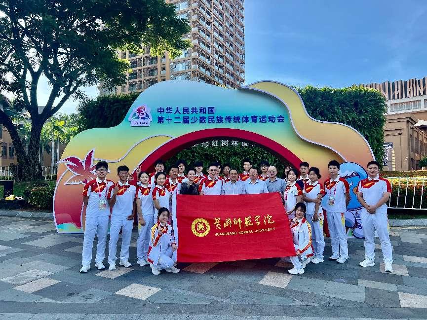 本网讯 11月30日,第十二届全国少数民族传统体育运动会在海南省三亚市闭幕,这是我国规格最高、规模最大的全国综合性民族体育盛会。由我校策划组织,体育学院、音乐学院师生及浠水杂技团队员联合组成的教练员和运动员队伍第一次代表湖北参赛,并在表演项目技巧类比赛中以两轮总分17.53分的成绩获得一等奖的优异成绩。
