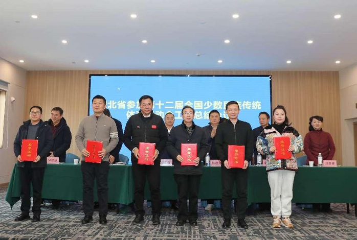 本网讯 12月13日,湖北省参加第十二届全国少数民族传统体育运动会工作总结大会在武汉市召开,湖北省体育局党组成员、副局长骆启义,湖北民族宗教事务委员会党组成员、副主任赵军章等出席会议。我校体育学院获评第十二届全国少数民族传统体育运动会突出贡献单位。我校体育学院教师黄高松,音乐学院教师徐敏,体育学院学生白学详、张英武被评为突出贡献个人。
