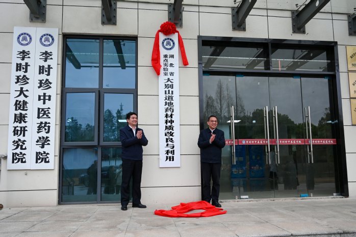 本网讯 3月28日下午,大别山道地药材种质改良与利用省级重点实验室揭牌仪式暨学术委员会第一次会议在李时珍中医药学院101会议室举行。校党委副书记、校长漆昌柱,副校长马志斌,市科技局党组书记姜宽及重点实验室学术委员会专家等出席活动。